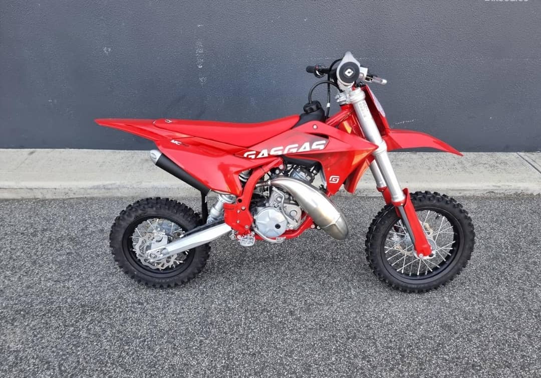 2024 GAS GAS MC 50 – The Ultimate Starter Bike for Young Riders Introducing the 2024 GAS GAS MC 50, the perfect motocross machine for aspiring young riders ready to take their first steps into the exciting world of off-road racing. Built with performance, safety, and fun in mind, this bike delivers everything a young rider needs to develop skills and confidence on the track. The MC 50 is powered by a high-performance 50cc 2-stroke engine with an automatic centrifugal clutch, making it easy for beginners to focus on riding without worrying about shifting gears. The bike’s lightweight chassis and premium suspension components ensure a smooth and controlled ride, even on challenging terrain. Sporting the signature GAS GAS red, the MC 50 is as stylish as it is capable. With its rugged build and race-inspired design, it’s ready to handle anything young racers throw its way. Adjustable components like handlebars and suspension settings allow the bike to grow with the rider, ensuring years of fun and development. Brand new and built for adventure, the 2024 GAS GAS MC 50 is the ultimate choice for the next generation of motocross enthusiasts. We also offer convenient in-house finance and insurance options to make owning this incredible bike easier than ever. Contact us today to learn more and make this bike part of your family’s off-road journey!